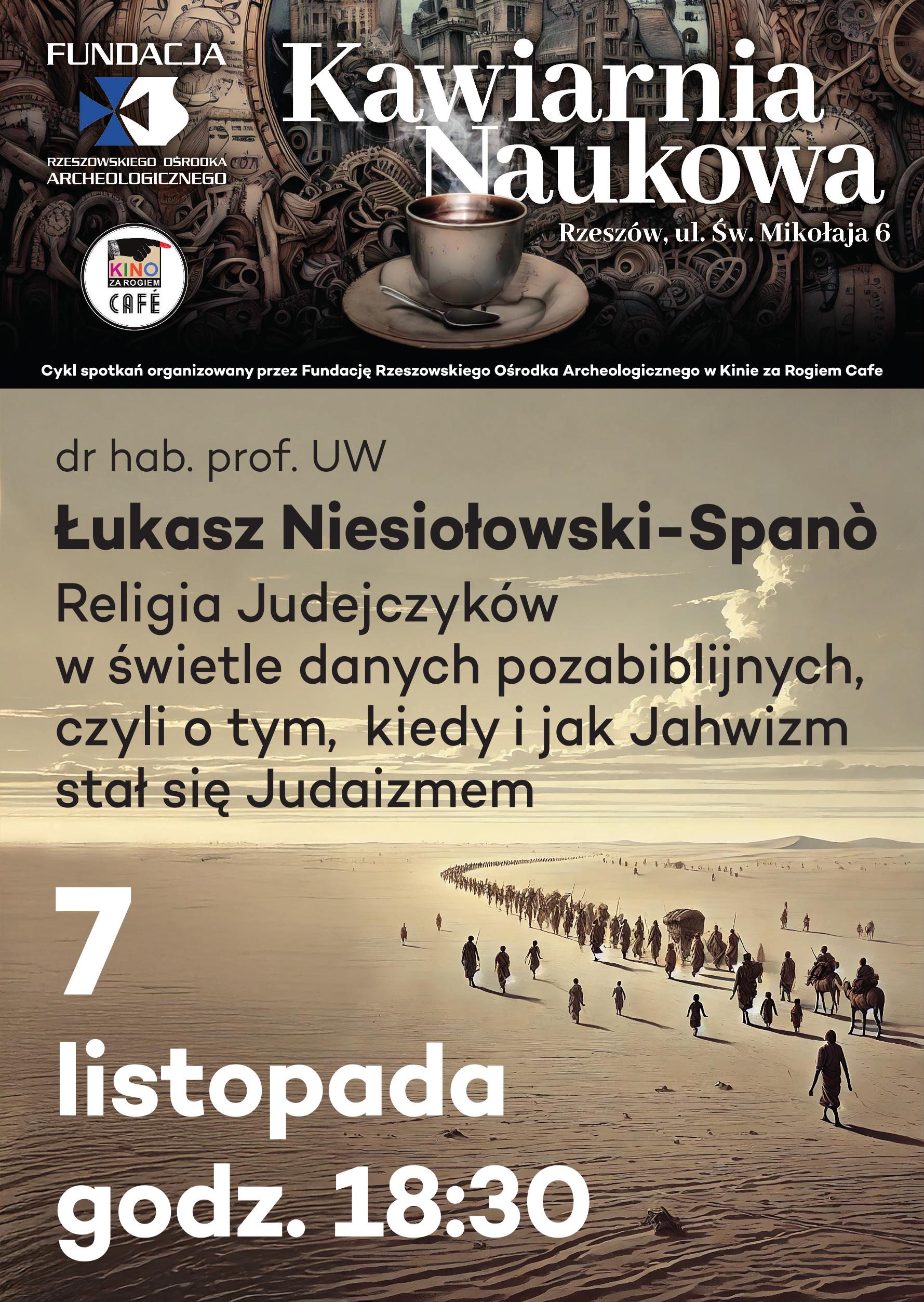 Zapraszamy Was na pierwszy wykład z naszego nowego cyklu „Kawiarnia Naukowa” pod tytułem „Religia Judejczyków w świetle danych pozabiblijnych, czyli o tym, kiedy i jak jahwizm stał się judaizmem”.